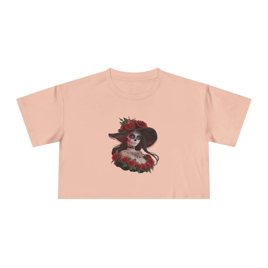 Crop Tee - Chibi Style Woman with Sugar Skull Makeup Design